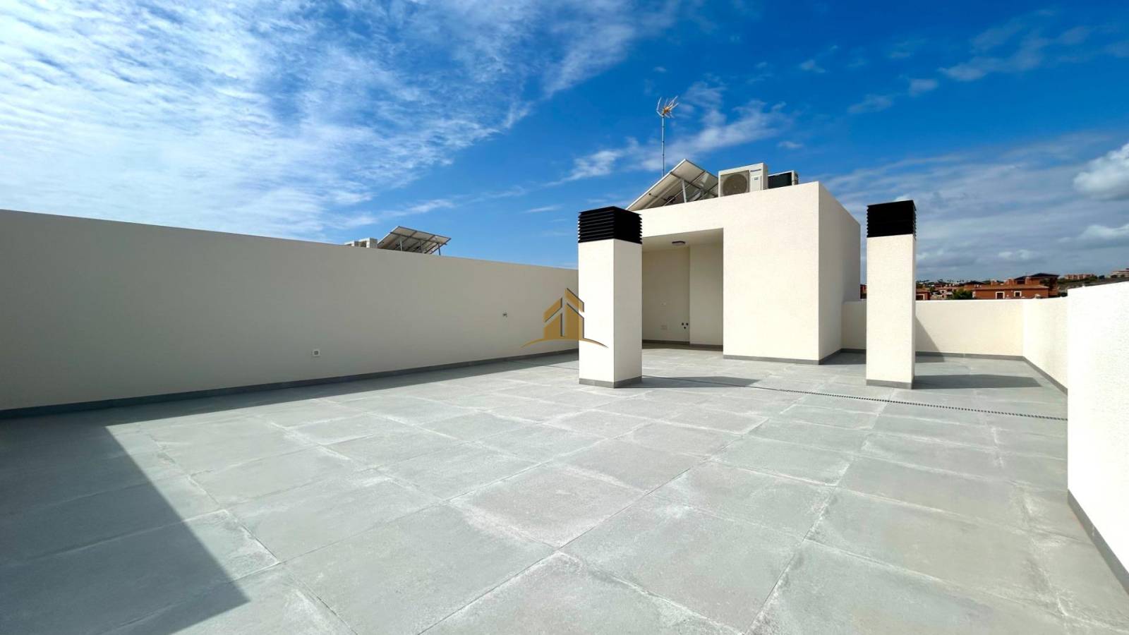 Ático a Estrenar con Solárium Privado en Villamartín – PAU 8. Disfruta del confort y la modernidad en este espectacular ático de obra nueva, ubicado en la codiciada zona de Villamartín – PAU 8, Orihuela Costa. Situado en la tercera planta con ascensor, esta vivienda destaca por su excelente orientación y abundante luz natural durante todo el día.. . Características destacadas:. 80 m2 construidos. . 2 dormitorios y 2 baños completos. . Amplio salón-comedor luminoso. . Cocina totalmente equipada con electrodomésticos. . Terraza y solárium privado con sol todo el día. . Preinstalación de aire acondicionado y barbacoa. . Plaza de garaje subterráneo y trastero incluidos. . Este exclusivo residencial ofrece piscina comunitaria, zonas ajardinadas y todas las comodidades para disfrutar al máximo del estilo de vida mediterráneo. Ideal tanto como residencia habitual como para vacaciones.